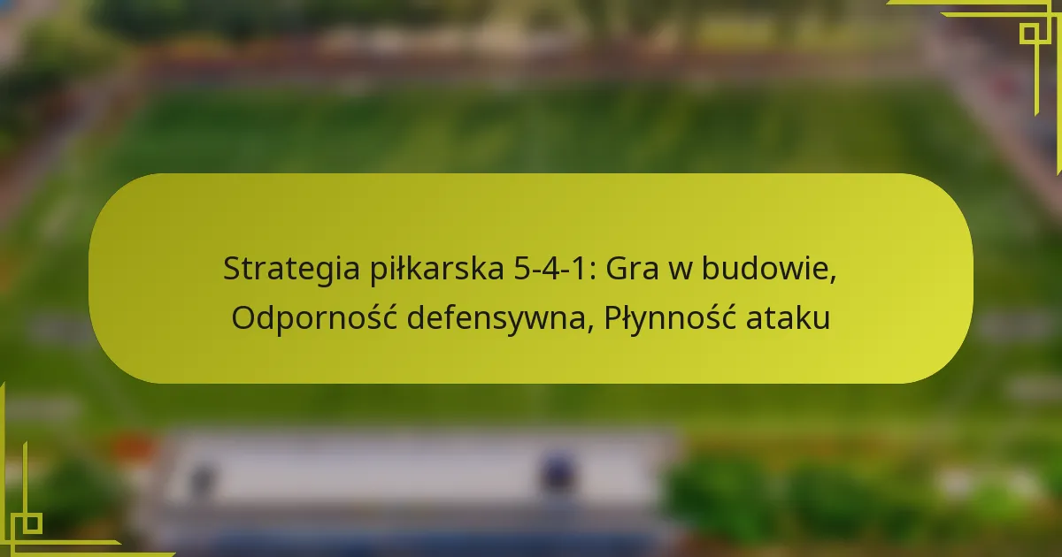 Formacja 5-4-1 kładzie nacisk na silną strukturę defensywną, jednocześnie umożliwiając szybkie przejścia do ataku. Ten układ zazwyczaj obejmuje pięciu obrońców, czterech pomocników i jednego napastnika, tworząc zwartą jednostkę, która może absorbować presję i wykorzystywać okazje do kontrataków.